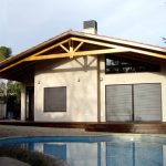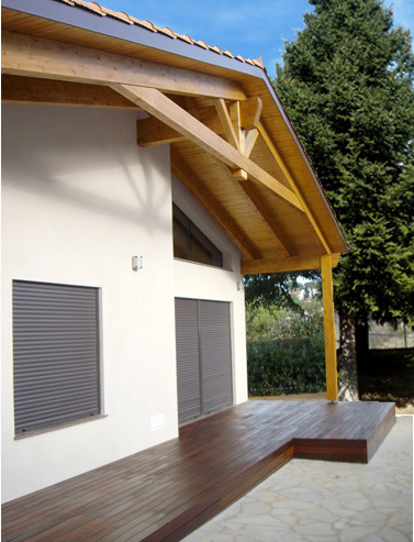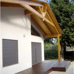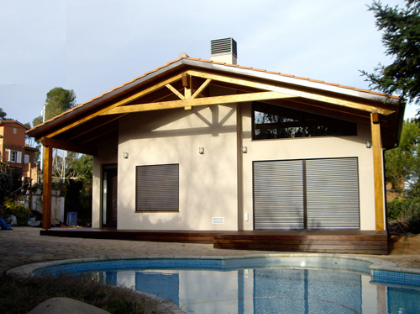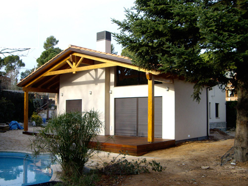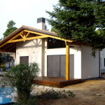 Estructura de entramado de madera y acabado exterior con cámara ventilada y acabado con panel exterior en revoco.